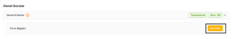 Kayıt işlemi tamamlandıktan sonra eklenen soruları dışa aktarmak için kullanılan Dışa Aktar butonuna tıklandığında işlemi yapan kullanıcının dilinde işlem yapılacaktır.